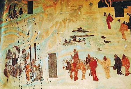 敦煌壁畫上的張騫出使西域圖。
