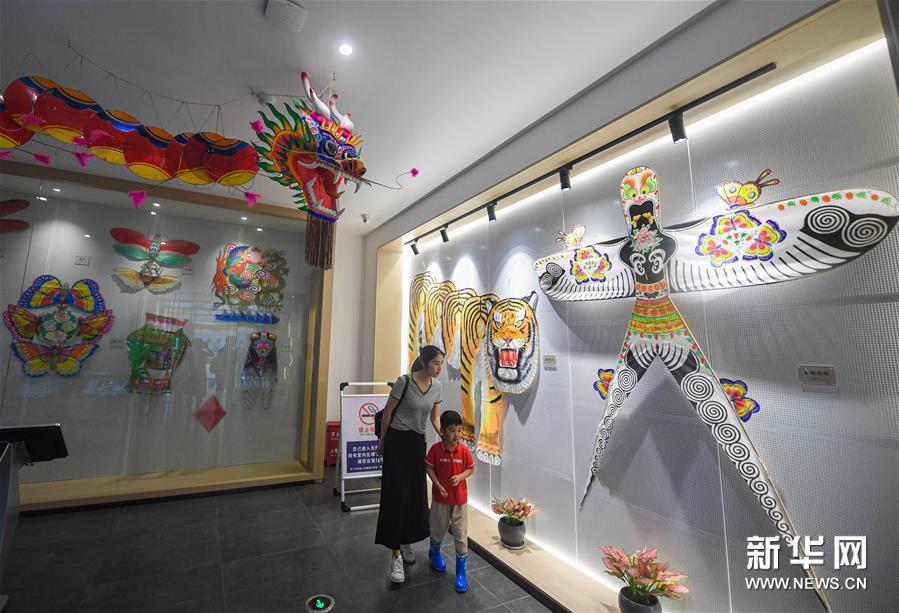 6月6日,游客在瓶窯老街內(nèi)參觀“風箏燈彩館”。新華社記者 徐昱 攝