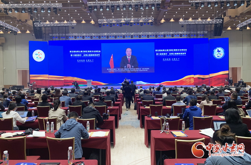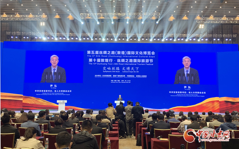 中國甘肅網(wǎng)9月24日訊(本網(wǎng)記者  宋芳科 楊亞楠 張振國)9月24日上午,第五屆絲綢之路(敦煌)國際文化博覽會(huì)和第十屆敦煌行·絲綢之路國際旅游節(jié)開幕。本屆“一會(huì)一節(jié)”由文化和旅游部、國家廣播電視總局、中國國際貿(mào)易促進(jìn)委員會(huì)、甘肅省人民政府共同主辦,以“交響絲路 文博天下”為主題,旨在進(jìn)一步加強(qiáng)“一帶一路”人文交流的官方合作和民間往來,增進(jìn)共建“一帶一路”國家的文化認(rèn)同。中共中央政治局委員、中央書記處書記、中宣部部長(zhǎng)黃坤明以視頻方式發(fā)表主旨演講。