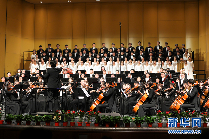 12月28日,指揮林大葉在音樂會上指揮。新華社記者 郎兵兵 攝