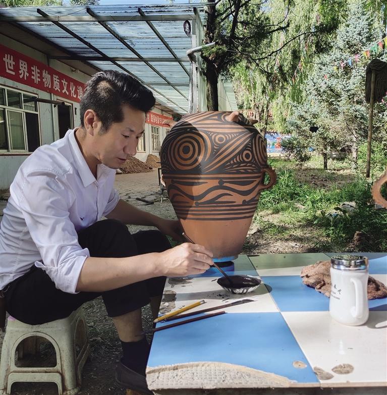 彩陶蘊含著神秘而古樸的遠古文化,其精巧的技藝更蘊含著古人類的智慧和創(chuàng)造力,包含著獨特的文化記憶和民族情感。馬黑麥用自己的方式“復原”了古人的勞動方式和審美情趣,并在此基礎上進行了創(chuàng)新和延續(xù),他以非遺傳承人的身份為己任,追根溯源,不斷探索,將彩陶文化的資源優(yōu)勢轉化為促進經濟發(fā)展的產業(yè)優(yōu)勢和經濟優(yōu)勢,在國家大力倡導和發(fā)展文化產業(yè)的背景下走出了一條可持續(xù)發(fā)展的道路。2021年12月23日,馬黑麥被當?shù)卣谟?ldquo;提名河洲工匠”獎,對此殊榮馬黑麥感到榮幸的同時又深感責任重大,就像他說的:“彩陶傾注了我對家鄉(xiāng)的感情,我會繼續(xù)努力將彩陶技藝和文化發(fā)揚和傳承下去,相信我們非遺傳承人的路會越走越寬廣。”