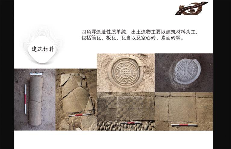 此前勘探發(fā)現(xiàn),四角坪遺址外圍為夯土圍墻,中部為面積約900多平方米的方形夯土臺基,臺基頂部四周有回廊式建筑。經過兩年的發(fā)掘,摸清了夯土臺基的形制,發(fā)現(xiàn)了臺基中心較特殊的半地穴式建筑,以及臺基外圍第一排附屬建筑。每組建筑之間有寬約一米的夯土通道連接,建筑周圍散落各種建筑構件,如板瓦、筒瓦、瓦當、空心磚等。通過考古發(fā)掘顯示,四角坪遺址建筑體量巨大,等級分明,格局規(guī)整對稱,是秦帝國時期代表國家意志的禮制性建筑群。