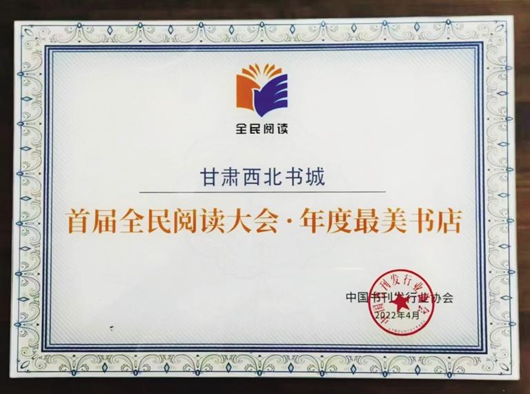 西北書城榮獲首屆全民閱讀大會“年度最美書店”榮譽稱號
