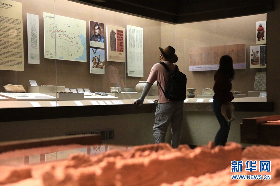 5月15日,游客在甘肅省敦煌市博物館參觀文物展。新華網(wǎng)發(fā)(張曉亮 攝)