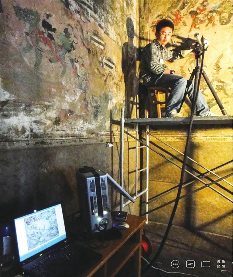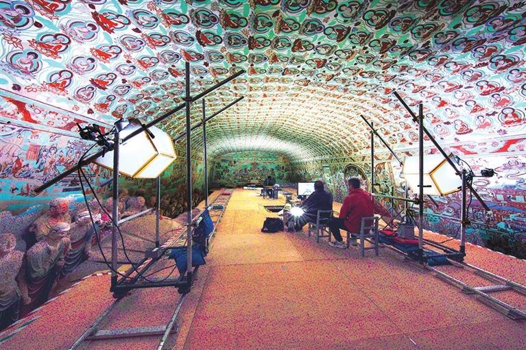 莫高窟第148窟壁畫數(shù)字化采集現(xiàn)場(chǎng)。