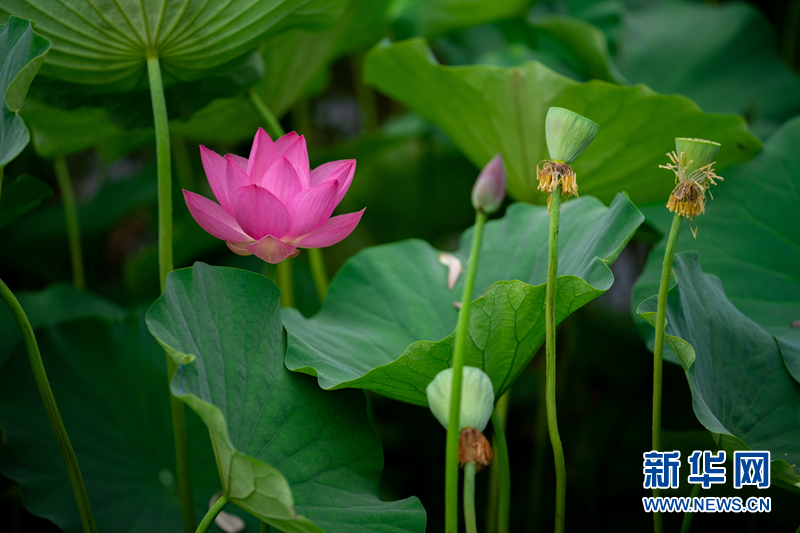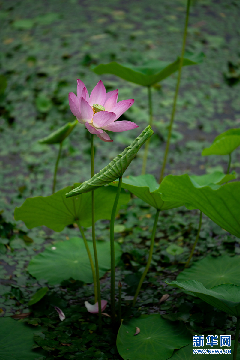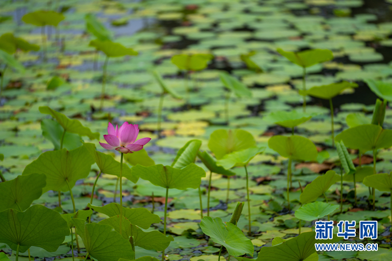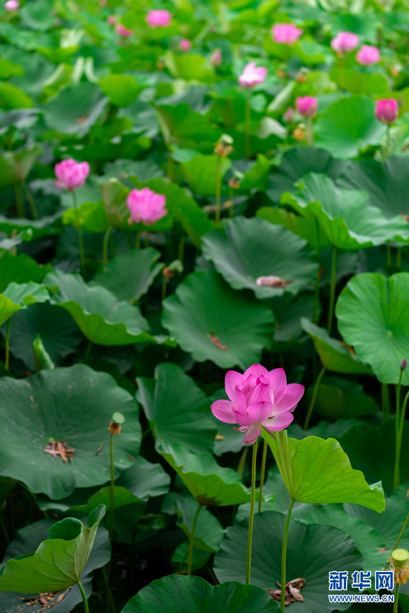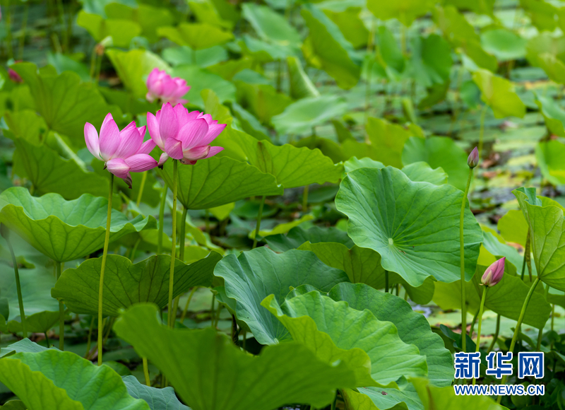 盛夏時節(jié),甘肅省隴南市成縣裴公湖里的荷花競相綻放,在炎炎夏日中帶來一絲清涼。新華網(wǎng)發(fā)(陳爭強(qiáng) 攝)