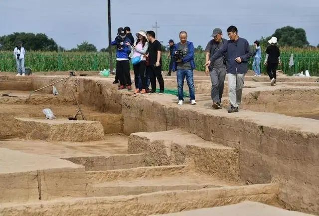 考古專家們在南佐遺址核心區(qū)大型宮殿建筑發(fā)掘現(xiàn)場考察(8月23日攝)。新華社記者 李賀 攝