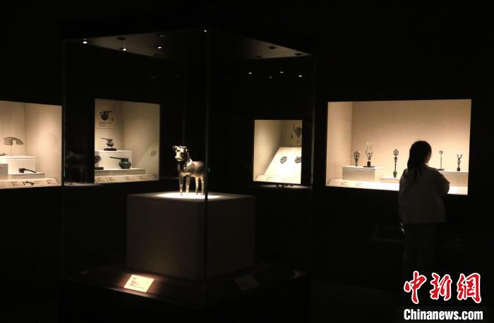 圖為游客在敦煌莫高窟參觀“燦爛記憶:從美索不達(dá)米亞到犍陀羅——東方文明古國冶金術(shù)展”。(資料圖) 張曉亮 攝