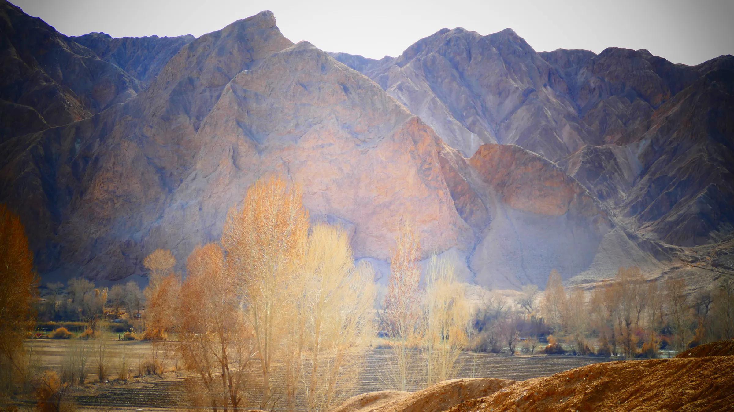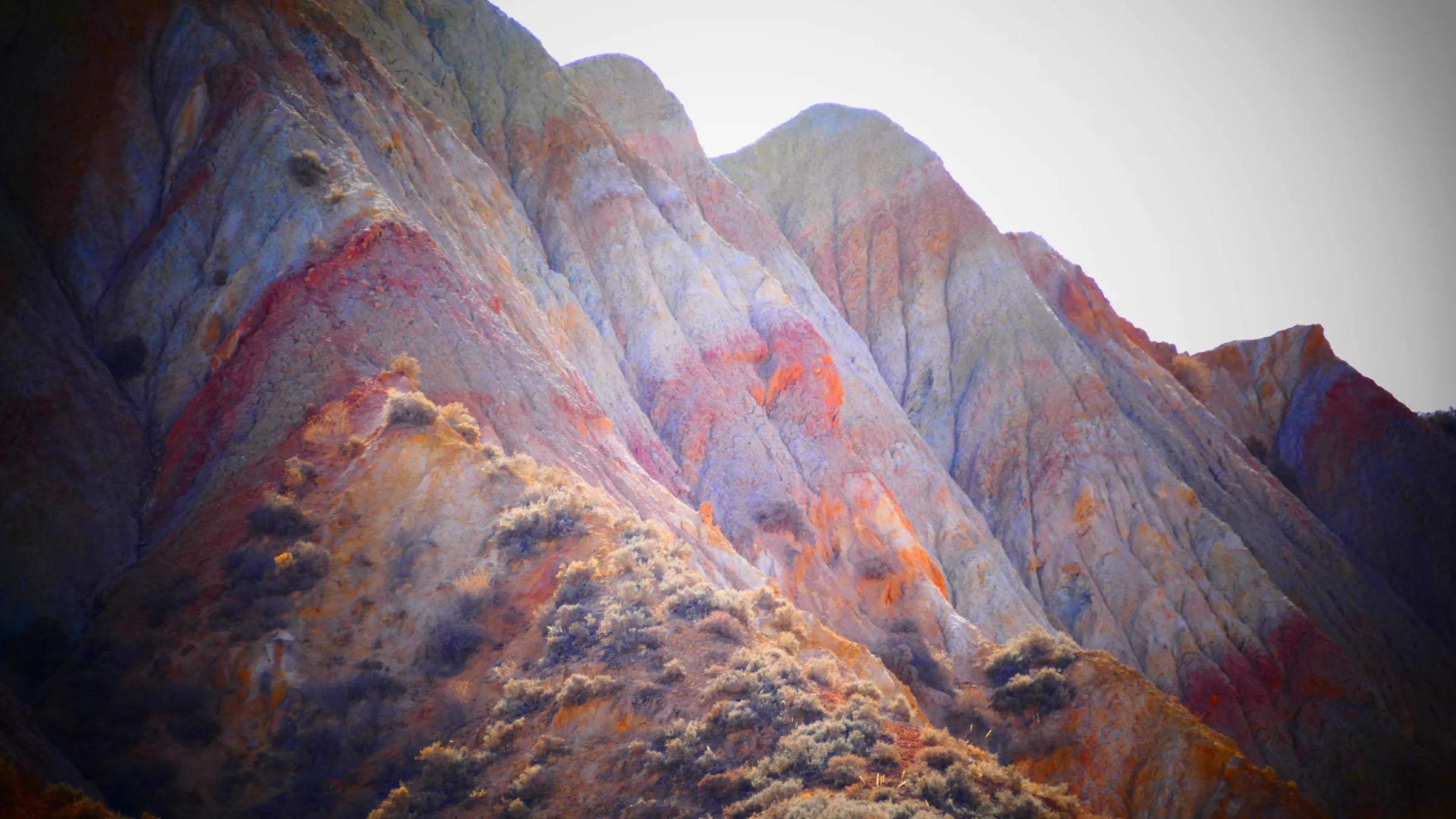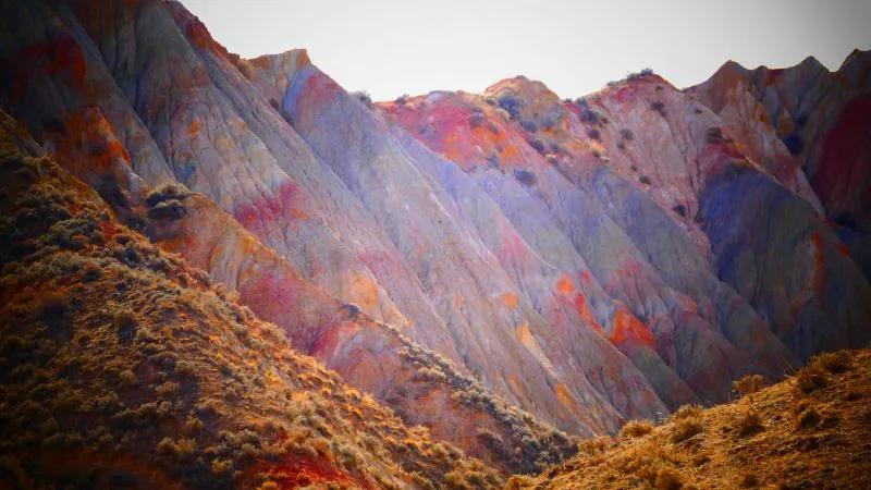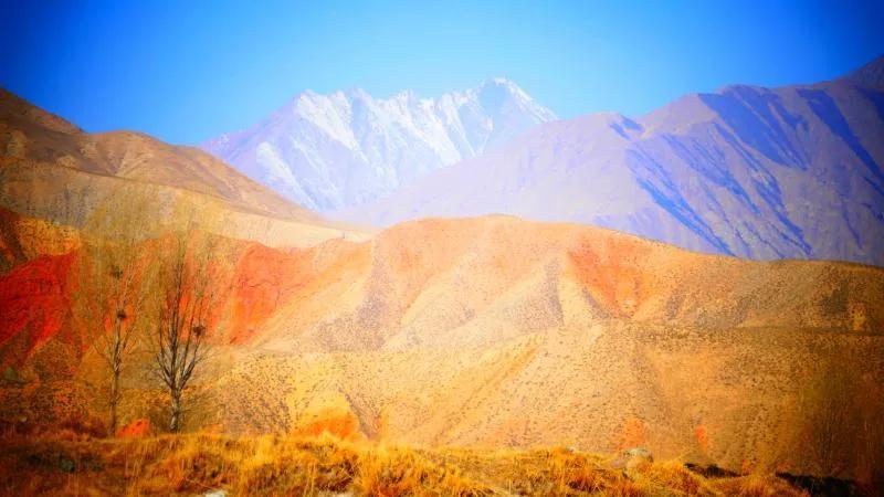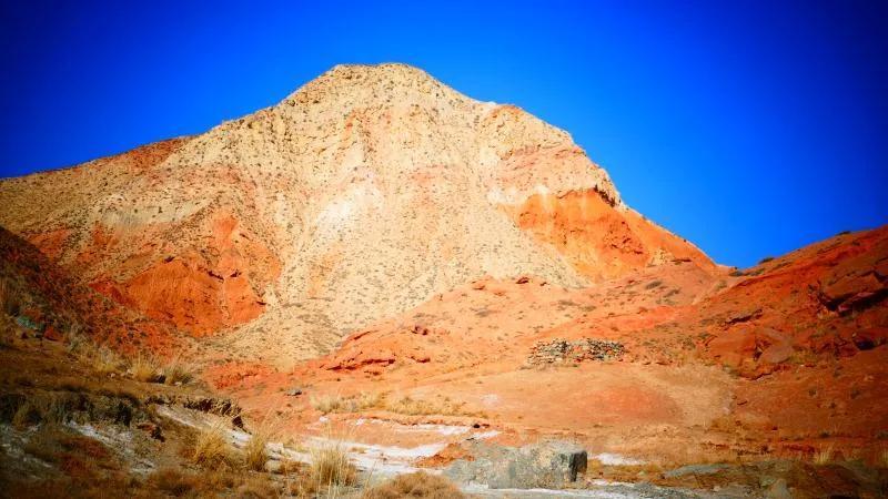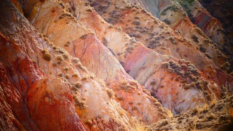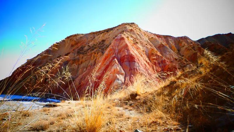從馬營河大峽谷南端再向南一眼望去就是祁連雪山,沿著河道通過高臺縣新壩鎮(zhèn)的紅沙河村,向東南走進(jìn)祁連山脈可見一片五顏六色的奇觀,又一個丹霞地貌在祁連山展現(xiàn),可稱高臺“小泉丹霞〞。據(jù)說這個“丹霞”還沒有媒體“曝過光〞。