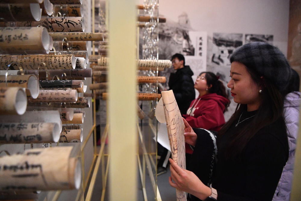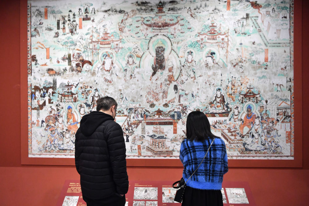 4月5日,觀眾在敦煌研究院蘭州分院敦煌藝術(shù)館參觀。新華社記者 陳斌 攝