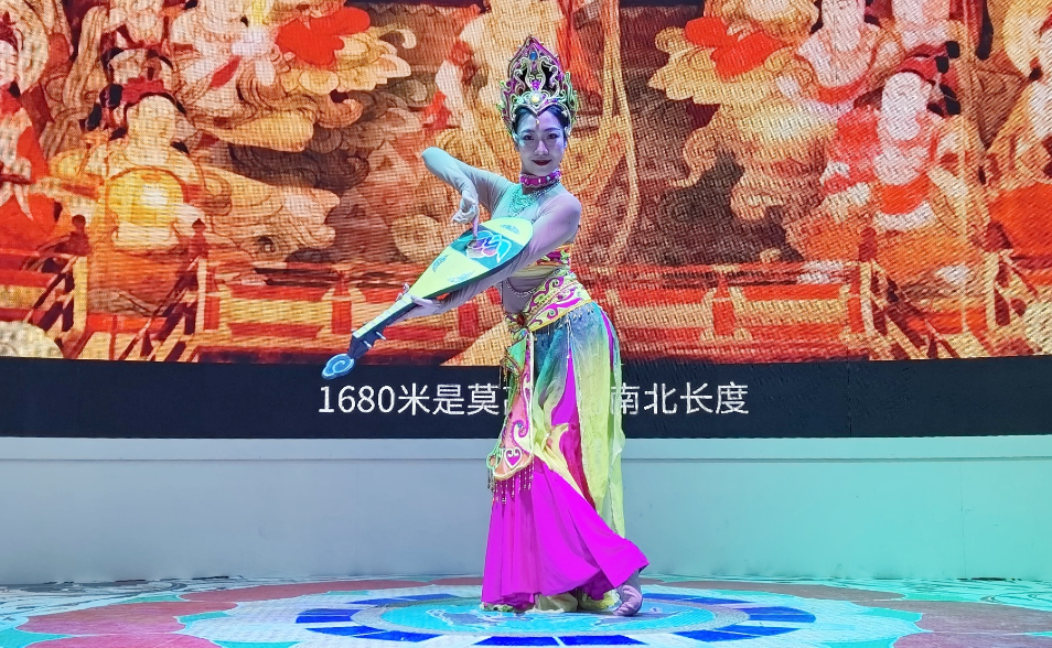 展覽現(xiàn)場,甘肅歌劇院的6名專業(yè)演員在甘肅展館和整個(gè)展館內(nèi)開展游園式巡演活動(dòng)。演員們帶來的《年年有魚》《反彈琵琶》等精品舞蹈曼妙傳神,以一種更加“親民”的藝術(shù)形式吸引廣大中外客商和觀眾聚集甘肅展區(qū)領(lǐng)略甘肅風(fēng)采。