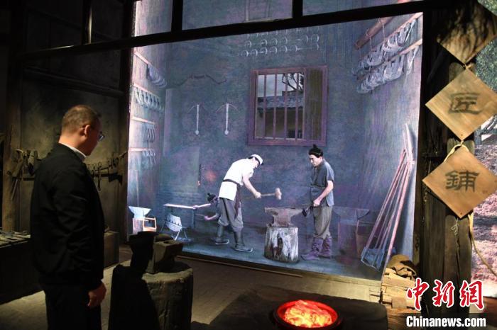 圖為游客在大漢賦館內(nèi)參觀鐵匠鋪。 戴文昌 攝