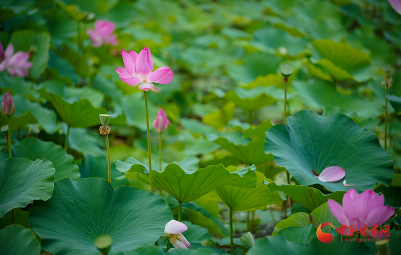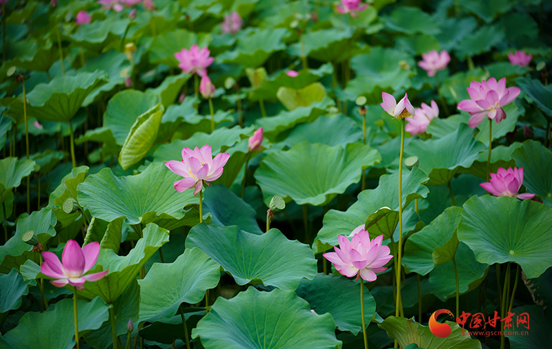 盛夏時節(jié),甘肅成縣裴公湖的荷花爭相盛開,吸引大批游客前來觀賞,拍照打卡。
