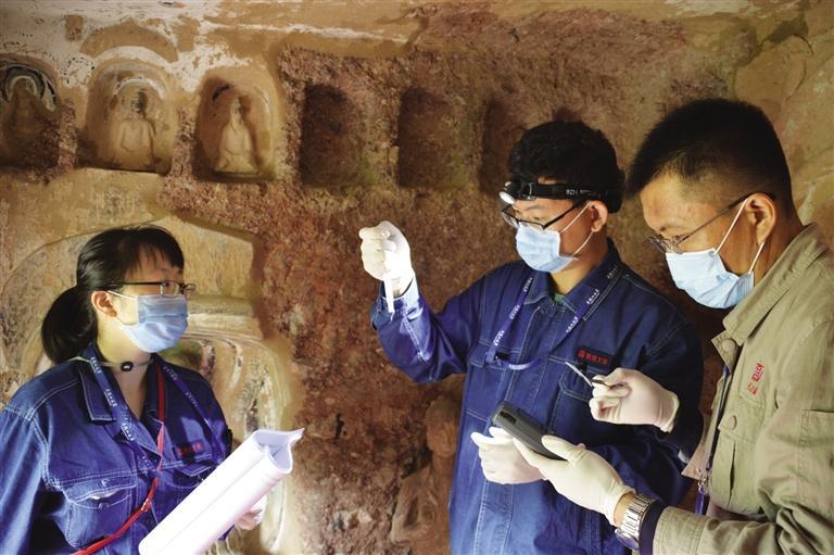 武發(fā)思團(tuán)隊(duì)進(jìn)行石窟寺微生物病害監(jiān)測(cè)