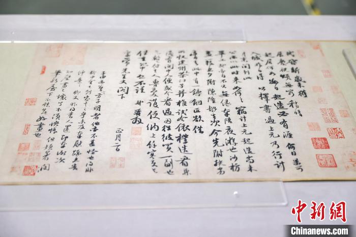 蘇軾真跡《新歲展慶帖》《人來(lái)得書帖》合卷在海南展出