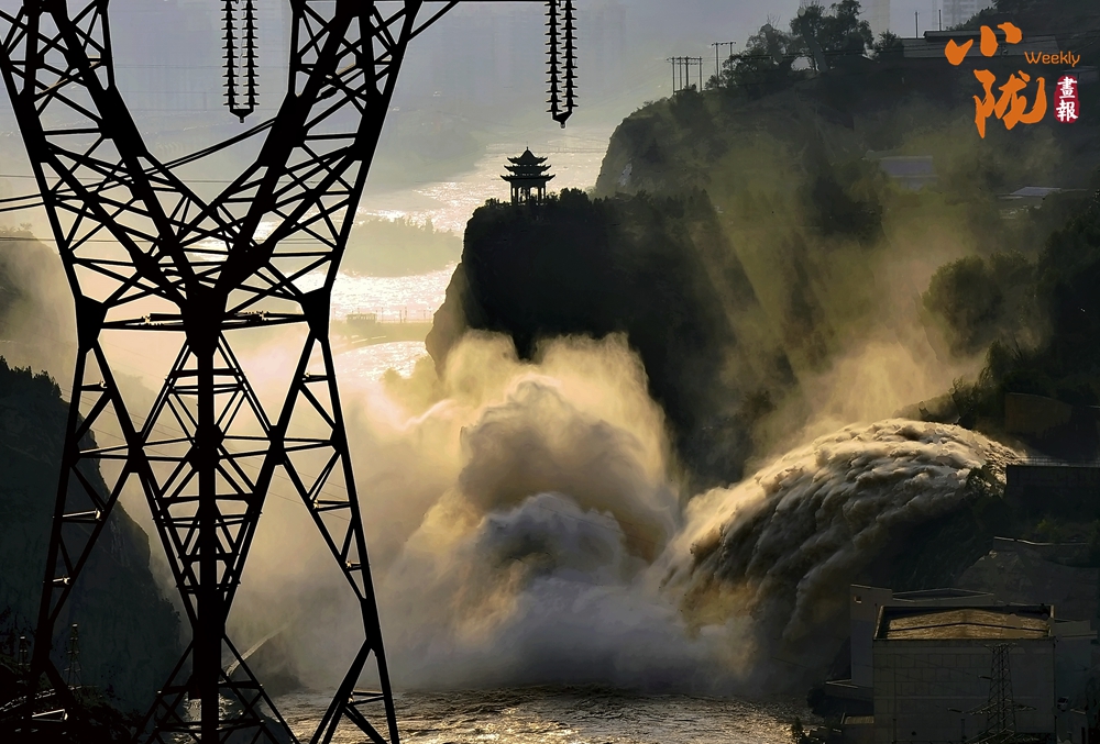 “奔騰泄水,何殊萬(wàn)馬”。穿行萬(wàn)里黃河水從100多米的溢洪道傾瀉而下、浪花飛濺、噴云吐霧、驚濤拍岸、似卷起千堆雪……