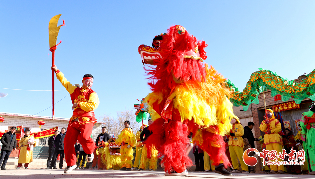 甘州區(qū)烏江鎮(zhèn)平原村“萬家和美”社火隊隊員們走街串巷到村民家中拜大年。 通訊員 王將 攝