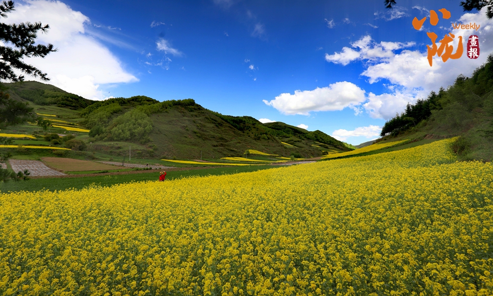 遠處黃綠交錯的油菜花,在藍天白云襯托下艷麗多彩,起伏的山巒上黃色顯得尤為斑斕,這里是眾多畫家、藝術家的創(chuàng)作天堂。