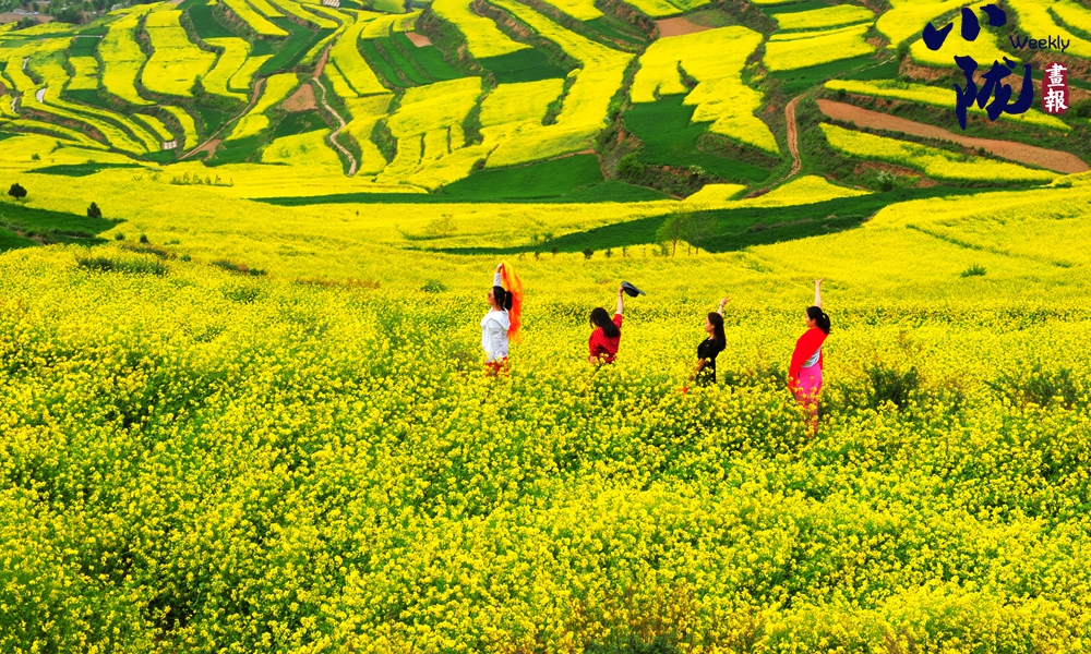 四月的武山,渭河兩岸、高山川道萬畝油菜花競相綻放,滿目金黃,美不勝收。