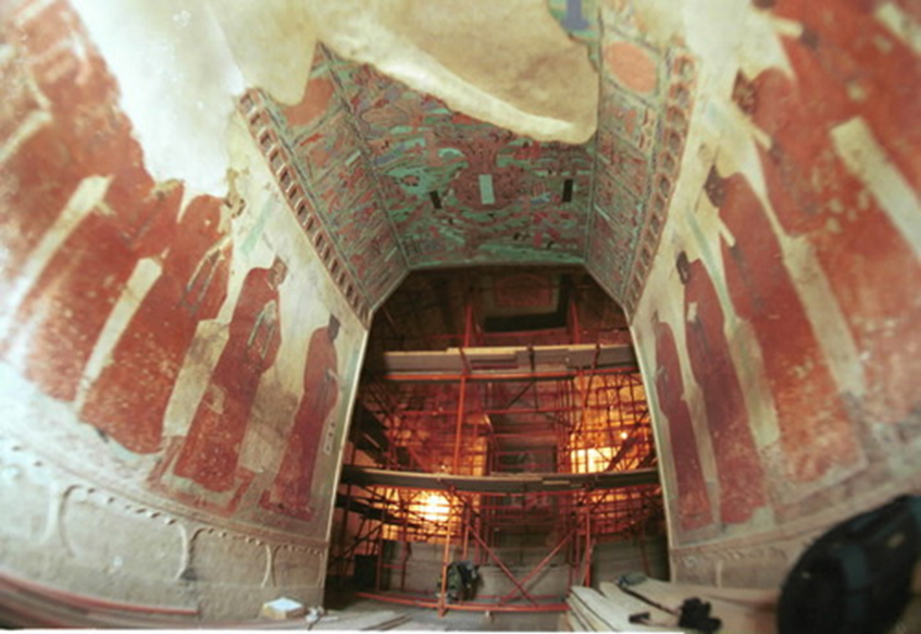 1989年年初,中國敦煌莫高窟465號窟內(nèi)的五處元代壁畫被盜。破案后,敦煌研究院立即組織有關(guān)專家將這些支離破碎的壁畫拼接粘合,以高超的技藝復(fù)原,然后按照圖片檔案資料進(jìn)行描繪,使它們基本上恢復(fù)了被盜之前的本來面貌。