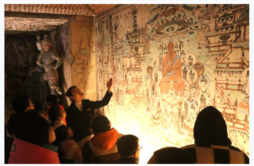 2024年,敦煌市依托當(dāng)?shù)刎S富的人文遺跡和自然景觀,大力發(fā)展文化研學(xué),建成莫高學(xué)堂、鳴沙書院等16個研學(xué)基地,推出壁畫臨摹、漢簡學(xué)堂等獨(dú)具敦煌特色的研學(xué)產(chǎn)品,讓游客和學(xué)生在參觀的同時進(jìn)一步體驗(yàn)敦煌文化的魅力。 據(jù)了解,敦煌市已推出冬春旅游優(yōu)惠政策,對大中小學(xué)生免市屬景區(qū)門票,莫高窟對研學(xué)團(tuán)隊(duì)開放洞窟由8個增至13個,并配備資深講解員講解。