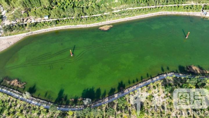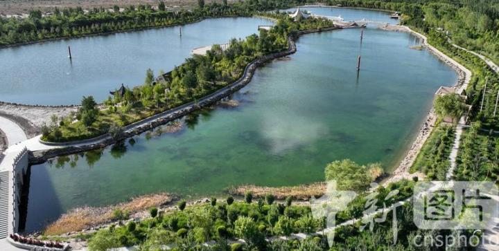 2024年7月27日,航拍甘肅省酒泉市金塔縣城西生態(tài)湖,綠意盎然,生機(jī)勃勃,構(gòu)成了“戈壁水鄉(xiāng)”的獨(dú)特畫(huà)卷。 中新社發(fā) 曹紅祖 攝