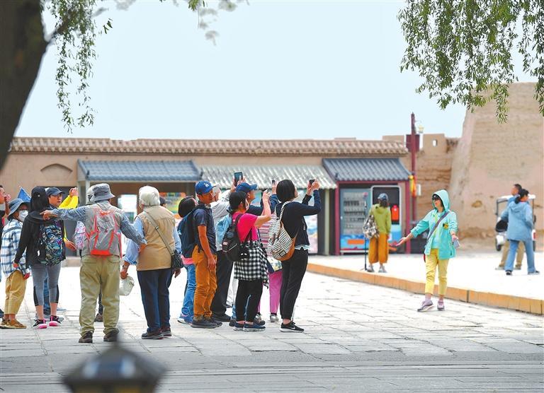 游客在嘉峪關(guān)關(guān)城拍照留念。新甘肅·甘肅日報記者 馬伊星