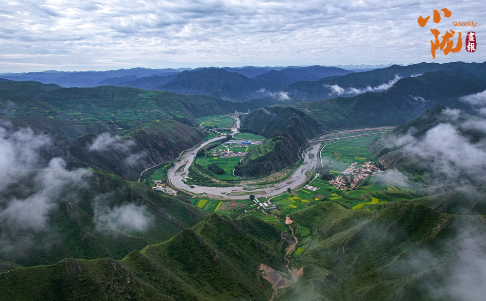 雨后放晴,山谷中的霧氣匯集升騰,化作云海環(huán)繞山峰,光線柔和空氣清涼,放眼望去,白云、青山、洮河、云海構成唯美畫卷。