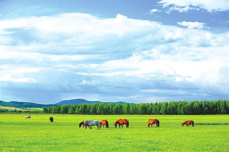 置身草原,高遠(yuǎn)空曠的天空下面,是明凈遼闊的草場(chǎng),白色的羊和黑色的牛像灑落在草叢中的白珍珠和黑珍珠,一頂頂帳篷點(diǎn)綴其間,不遠(yuǎn)處,有游人騎在馬背上,優(yōu)哉游哉,或拍照或奔馳。這里一年四季景色都十分迷人:春天山花爛漫,姹紫嫣紅,如煙如夢(mèng);夏季綠草如茵,碧波浪涌,養(yǎng)心養(yǎng)眼;秋天云纏霧繞,層林盡染,美麗迷人;冬天銀裝素裹,瓊花玉樹(shù),一派北國(guó)風(fēng)光。