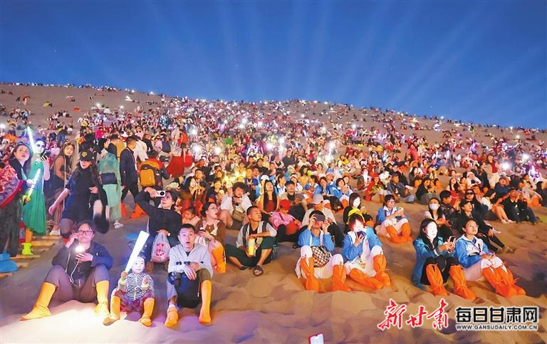 9月19日,游客在鳴沙山參與“萬(wàn)人星空演唱會(huì)”。 新甘肅·甘肅日?qǐng)?bào)記者 田蹊 馮樂(lè)凱