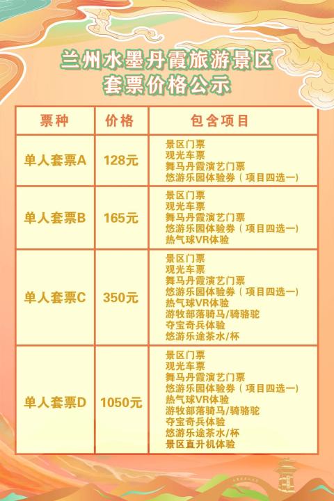 線上購(gòu)票:抖音、美團(tuán)、攜程、水墨丹霞小程序(可購(gòu)買(mǎi)套票、兒童票、老人票)