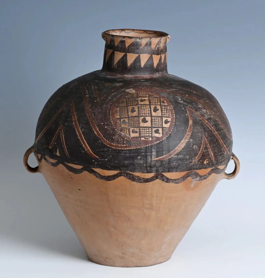 馬家窯文化創(chuàng)造了大批彩陶藝術精品,被譽為新石器時代彩陶之冠。形式優(yōu)美的漩渦紋是馬家窯類型的典型代表作,精美的半山類型彩陶又被公認為馬家窯文化的巔峰階段,這一時期的彩陶器形勻稱圓潤,紋樣采用黑紅兩色繪制,更加繁麗精致,器具造型和圖案渾然一體,給人帶來賞心悅目的美感享受。