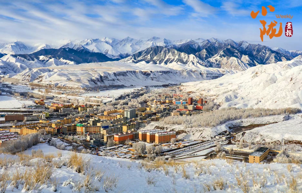 祁連山下,被譽為“空中草原”的康樂草原段披上了銀裝,皓然一色,如詩如畫。