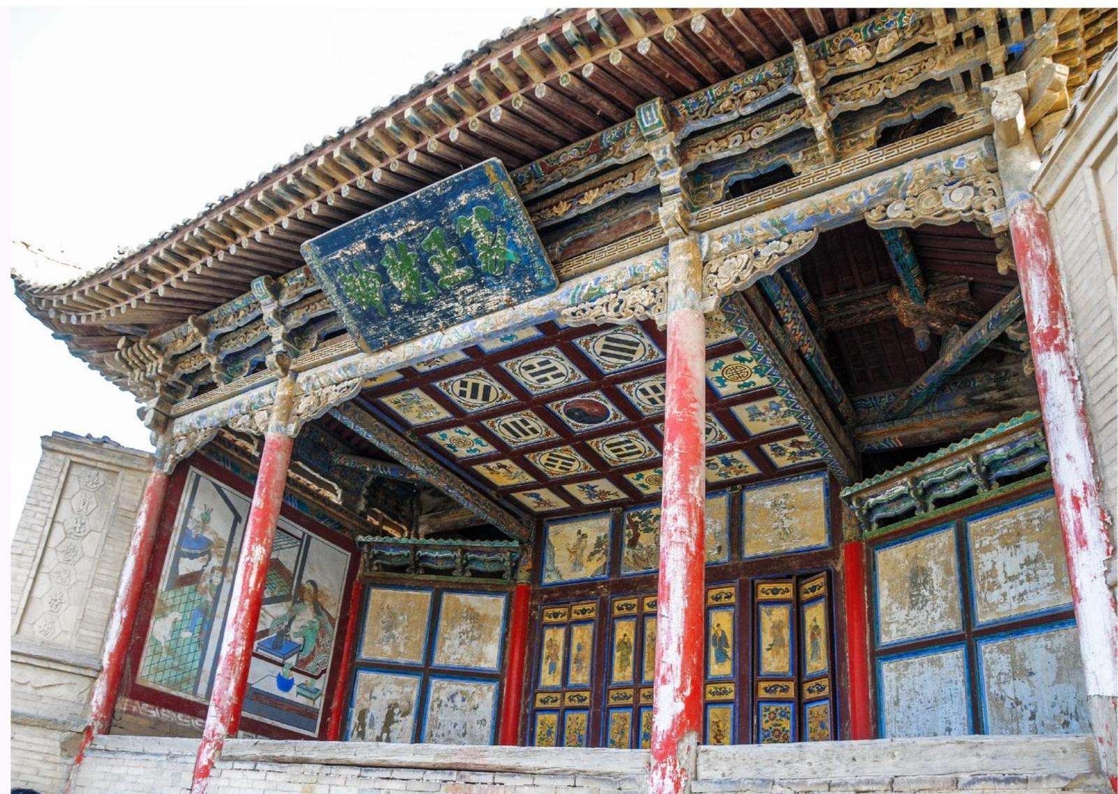 關(guān)帝廟戲樓(現(xiàn)存),關(guān)帝廟又稱武安王廟。明朝中期修建,萬歷六年(公元1578年)奉命鎮(zhèn)守嘉峪關(guān)的酒泉人佘動(dòng)帶頭重修。乾隆五十七年(公元1792年),游擊將軍袋什衣主持重修,關(guān)帝廟戲樓是當(dāng)時(shí)守城官兵、城內(nèi)居民及過往商旅的娛樂場(chǎng)所。戲樓位于朝宗門斜對(duì)面,南閘門內(nèi)側(cè),關(guān)帝廟對(duì)面。它的形制是典型的中國(guó)傳統(tǒng)古典戲臺(tái)。關(guān)帝廟戲臺(tái)上就有一副意義深遠(yuǎn)的對(duì)聯(lián),在兩側(cè)的八字屏風(fēng)磚上刻有:“離合悲歡演往事,愚賢忠佞認(rèn)當(dāng)場(chǎng)。”