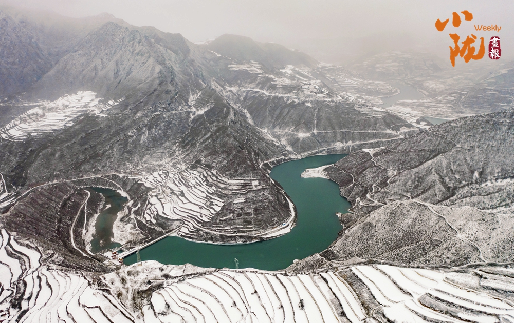 黃河上游最大支流的洮河穿境而過(guò),一路向東奔流。從高空俯瞰,大雪為洮河披上了一層華麗的銀裝,河水靜流,山巒靜止,水墨畫卷自然天成。