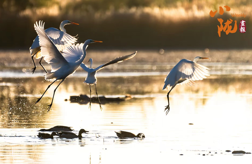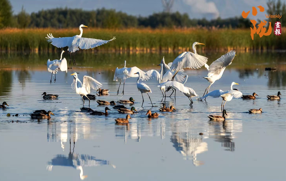 春天,這里萬物復(fù)蘇,蘆葦新綠,候鳥歸來,整個公園充滿生機(jī)。它們依水而居,或在水中游泳和潛水,或在淺水、灘地與岸邊涉行,或在其上空飛行,引得游人們駐足觀看,構(gòu)成一幅人與自然和諧共生的生態(tài)畫卷。