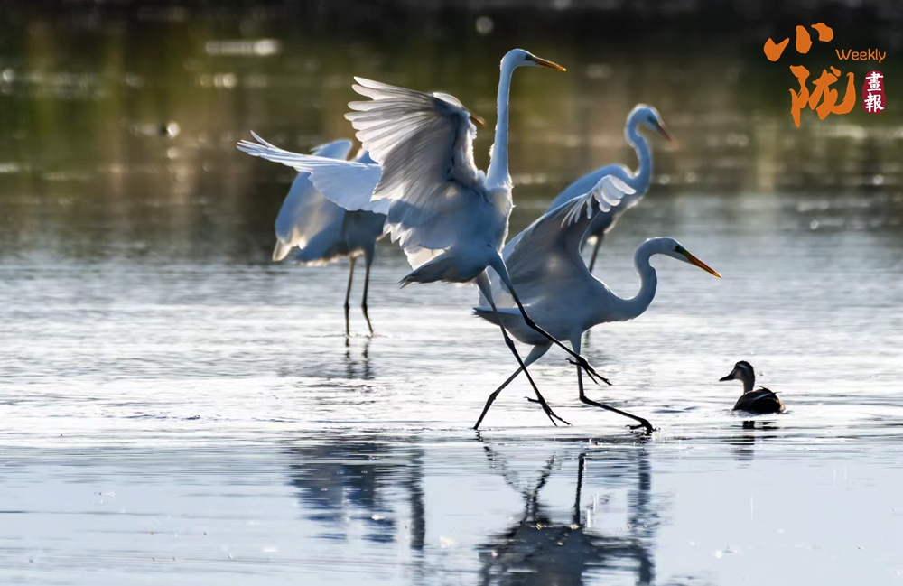 湖中的白鷺翩翩起舞,嬉鬧翻飛,歡快鳴叫,有的停落湖岸,有的游向湖心,有的翻飛空中,為游客帶來無盡的歡樂。看鳥兒們嬉鬧,仿佛回到童年時代。自由、自在、生機(jī)無限,讓每個人感受到無窮的生命力量。