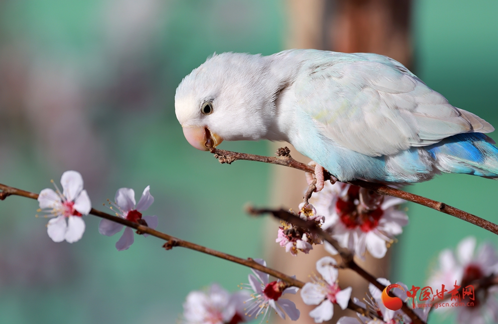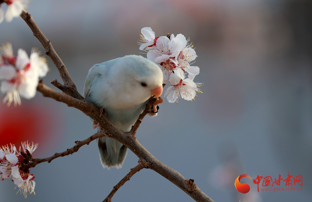隴拍客|金塔:杏花枝頭鸚鵡鬧