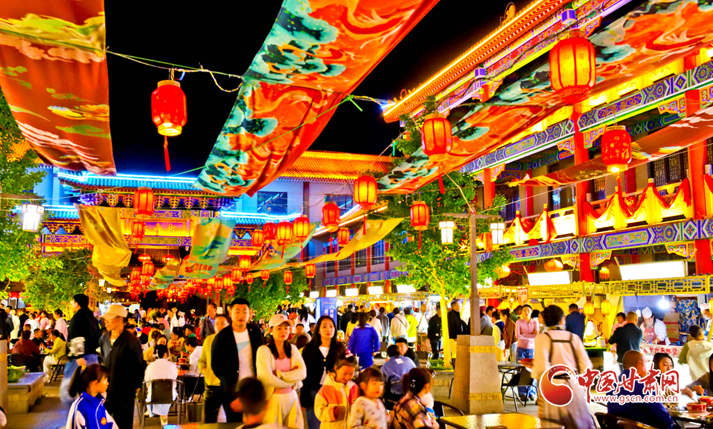 5月23日,甘肅省張掖市甘州區(qū)甘州府城內(nèi),燈光秀、書(shū)畫(huà)展、文藝展演、非遺展示令人目不暇接,美食一條街的各色美食飄香四溢,吸引眾多游客和市民前來(lái)拍照打卡,盡享夜晚美好時(shí)光。