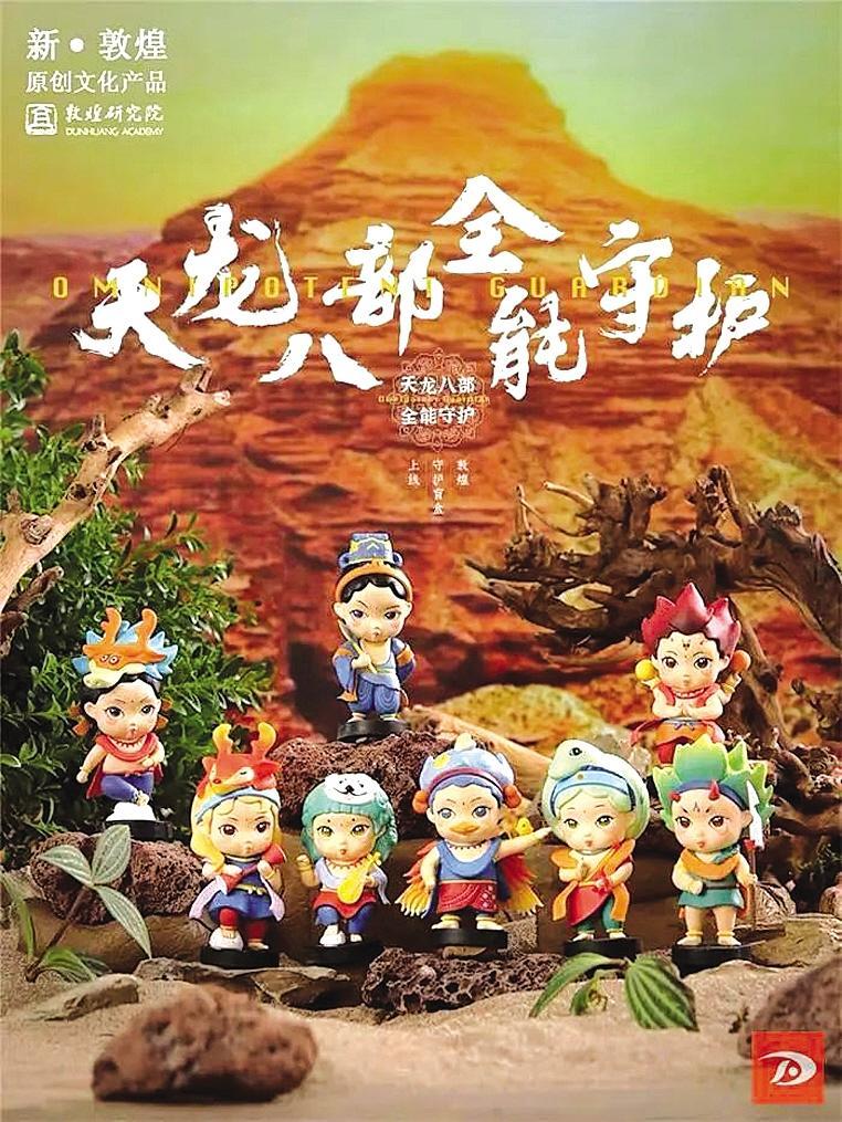 盲盒的設(shè)計取自敦煌莫高窟壁畫,特指佛經(jīng)中的八種神道怪物,和金庸的小說《天龍八部》也有人物對照。盲盒包括迦樓羅、乾闥婆、夜叉、摩睺羅伽、帝釋天、緊那羅、阿修羅、那伽八大護(hù)法神形象。這也是繼故宮、河南博物院、三星堆博物館之后,敦煌研究院又推出盲盒。