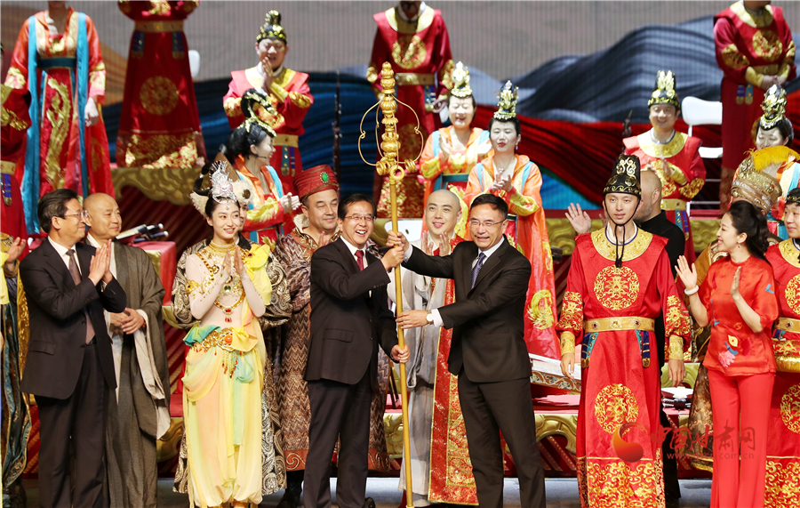 《玄奘西行》作為世界首部大型民族器樂劇,以絲綢之路文化交流使者玄奘的歷史故事為題材,集多民族樂器演奏和戲劇表演為一體,集中展示了敦煌莫高窟壁畫復(fù)原古樂器及古絲綢之路各民族傳統(tǒng)音樂的美妙旋律,體現(xiàn)了當(dāng)代民族音樂的繼承與創(chuàng)新精神,是我國民族器樂舞臺(tái)藝術(shù)的高峰之作。演出結(jié)束后,中央民族樂團(tuán)向甘肅省文藝院團(tuán)捐贈(zèng)舞美道具,并指導(dǎo)幫助甘肅省文藝院團(tuán)實(shí)現(xiàn)《玄奘西行》的常態(tài)化駐場演出,為甘肅省再添一張靚麗的文藝名片。