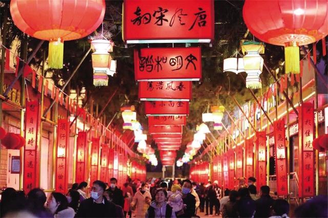 其中,甘南州夏河縣以民間舞與民歌聯(lián)歡的方式迎接春節(jié)的到來,“南木特”藏戲公益性展演活動也同步拉開序幕;武都高山戲民間演出活動在隴南市武都區(qū)魚龍鎮(zhèn)精彩上演;張掖市民樂縣秦腔展演讓城北民俗文化村的游客們大飽耳福;白銀市先后舉辦了景泰樹皮筆畫作品展、“美在民間”白銀剪紙傳承人作品邀請展;正月十三,定西市安定區(qū)內(nèi)官營鎮(zhèn)一年一度的“凈街”民俗活動成功舉行,現(xiàn)場熱鬧非凡;金昌市永昌縣“保護(hù)非遺·傳承民俗·慶祝元宵”為主題的“卍”字燈城民俗文化活動于元宵佳節(jié)閃亮登場;在蘭州老街穿漢服、賞花燈、游園會,沉浸式體驗(yàn)傳統(tǒng)文化成為新民俗。