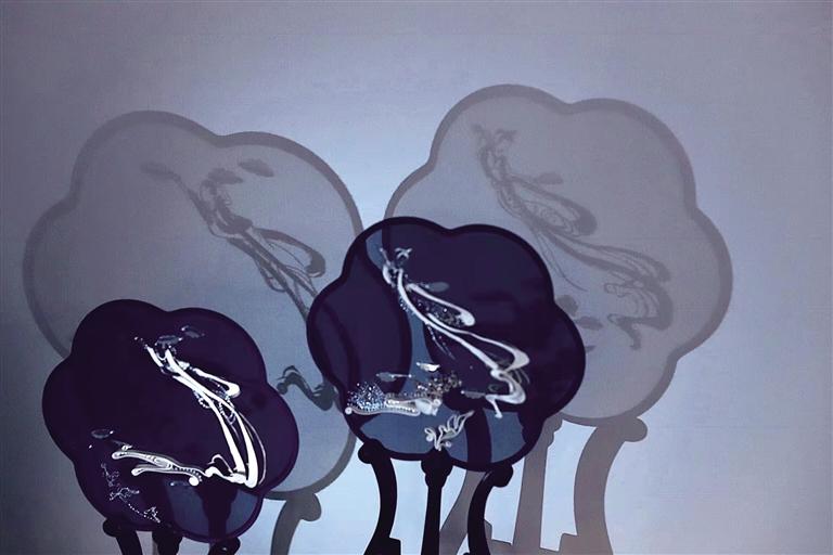 2019年劉瑤手繡的一組《敦煌手姿》扇面問世,黑色的生絹之上,用金線刺繡出敦煌手姿的婀娜曼妙。劉瑤在創(chuàng)作中,用線條貫穿每一個細(xì)節(jié),極盡傳情達(dá)意,用針與線賦予了手姿柔美與力量。也正是憑借著這一組精美絕倫的“敦煌風(fēng)”扇面,劉瑤叩開了這個項(xiàng)目的大門,成為了甘肅省唯一的入選者。