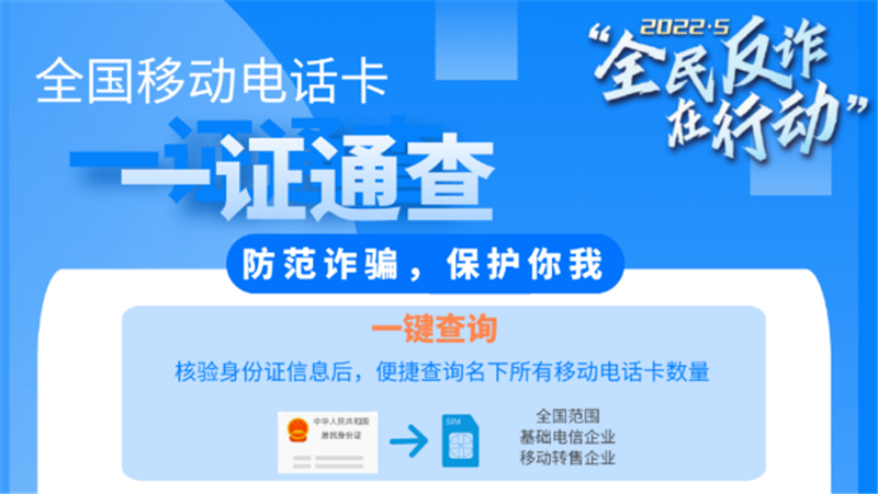 詐騙分子冒用他人身份開辦電話卡嚴(yán)重侵害用戶本人合法權(quán)益,廣大群眾對(duì)此深惡痛絕。“一證通查”服務(wù)打通了93家省級(jí)基礎(chǔ)電信企業(yè)和39家移動(dòng)通信轉(zhuǎn)售企業(yè)相關(guān)數(shù)據(jù),群眾只需要使用自己的居民身份證,即可通過線上線下多種渠道查詢本人名下持有的全國移動(dòng)電話卡數(shù)量,專用短信端口10699000將在48小時(shí)內(nèi)向預(yù)留手機(jī)號(hào)反饋結(jié)果,真正實(shí)現(xiàn)了全國移動(dòng)電話卡的統(tǒng)一便捷查詢。