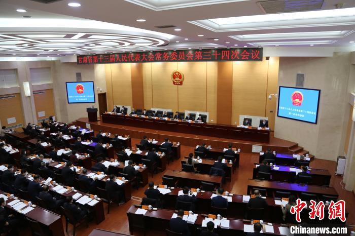 11月22至25日,甘肅省第十三屆人大常委會(huì)第三十四次會(huì)議在蘭州召開。圖為會(huì)議開幕式現(xiàn)場(chǎng)?!■亩盼蹶俊z