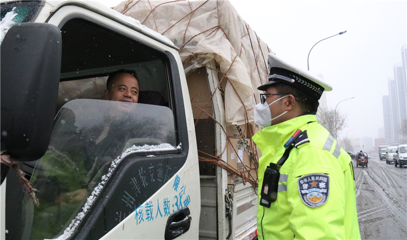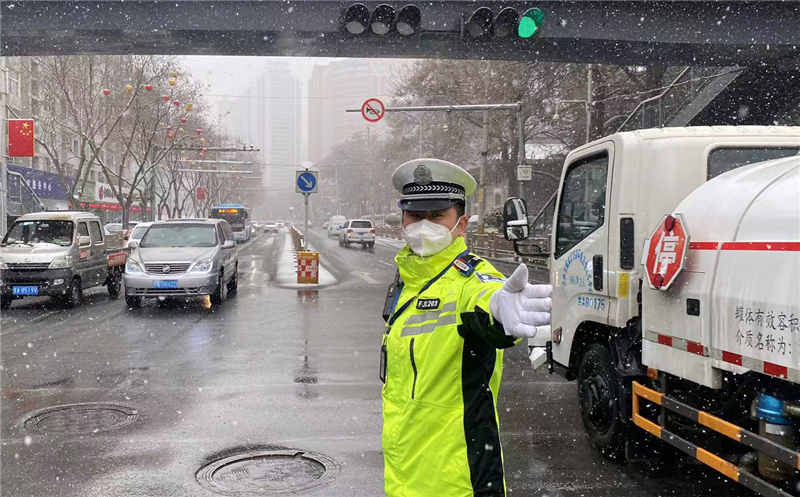 蘭州東崗交警雪天堅(jiān)守保暢通護(hù)平安