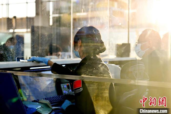 2024年11月7日,蘭州邊檢站執(zhí)勤民警驗(yàn)放國(guó)際航班旅客。王翔宇 攝