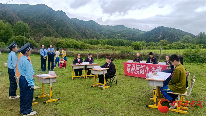 中國甘肅網(wǎng)7月5日訊(西北角·中國甘肅網(wǎng)記者 宋芳科 趙志富)7月4日,一場別開生面的模擬法庭在草原上舉行。來自甘南州合作市勒秀鎮(zhèn)中心小學(xué)的學(xué)生們,通過模擬庭審,上了一堂生動的普法課。這也是甘南州兩級檢察機關(guān)“崗拉梅朵”未檢工作室又一次送法進校園,為未成年人的成長撐起堅實的法律保護傘。