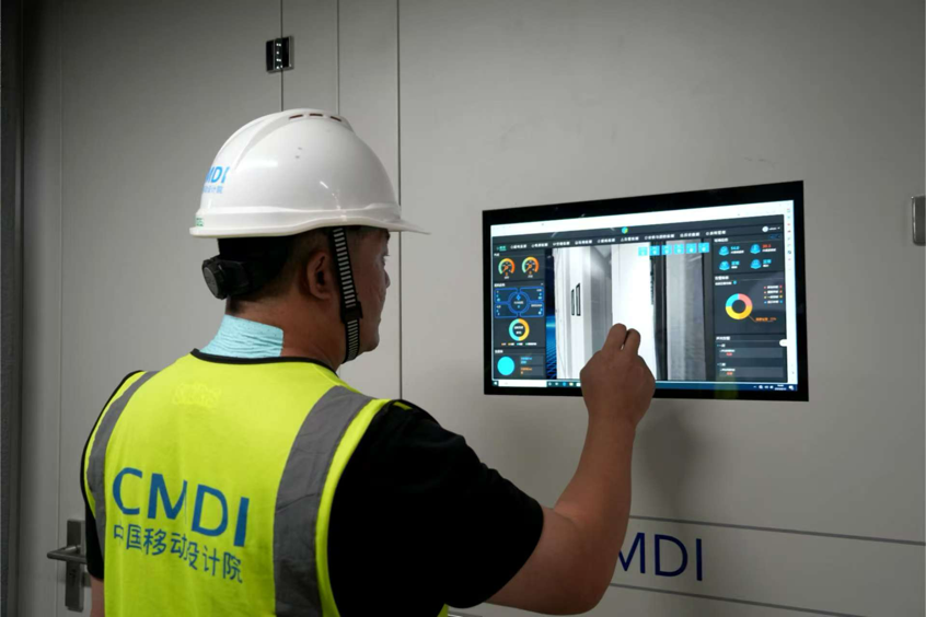 中國移動(dòng)(甘肅.慶陽)數(shù)據(jù)中心N01新型工業(yè)化數(shù)據(jù)中心工作人員正在進(jìn)行設(shè)備檢查。慶陽融媒供圖