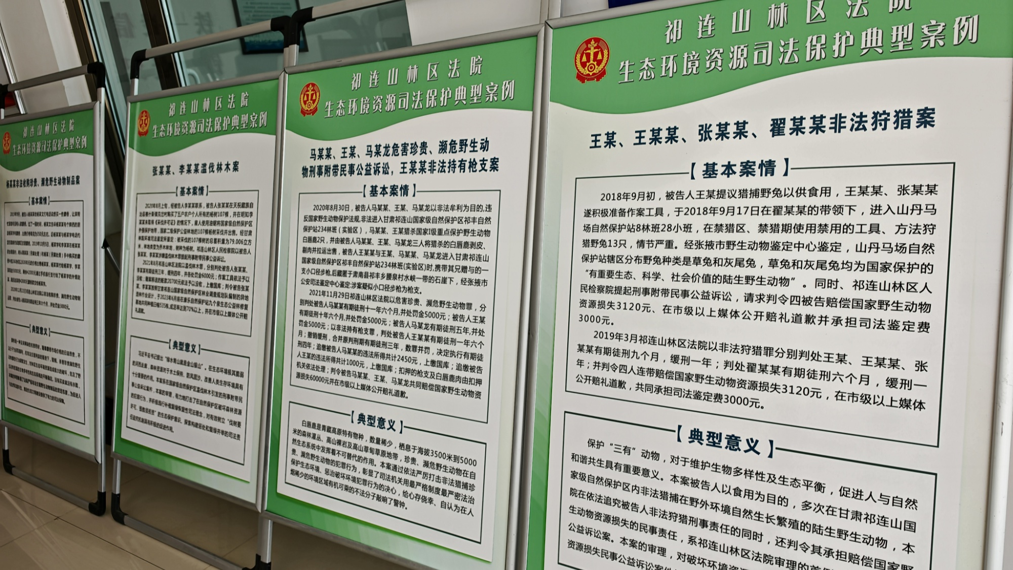 巡回審判庭的“法庭”從不在屋里。有時(shí)在油菜花田邊支起桌案,法槌一落,“王某前森林草原失火案”的庭審就成了最鮮活的普法課——這案子入選最高人民法院青藏高原生態(tài)保護(hù)典型案例,法官蹲在牧人身邊,指著草原防火設(shè)備說“咋用”,掰著指頭算“失火要擔(dān)啥責(zé)”,牧民們握著趕牧鞭聽得入神,連羊群都靜悄悄地伏在遠(yuǎn)處。辦案點(diǎn)的展板上,非法采礦、危害珍貴野生動(dòng)物等10個(gè)典型案例圖文并置,像10面透亮的鏡子,照得生態(tài)保護(hù)的法律紅線清清楚楚。